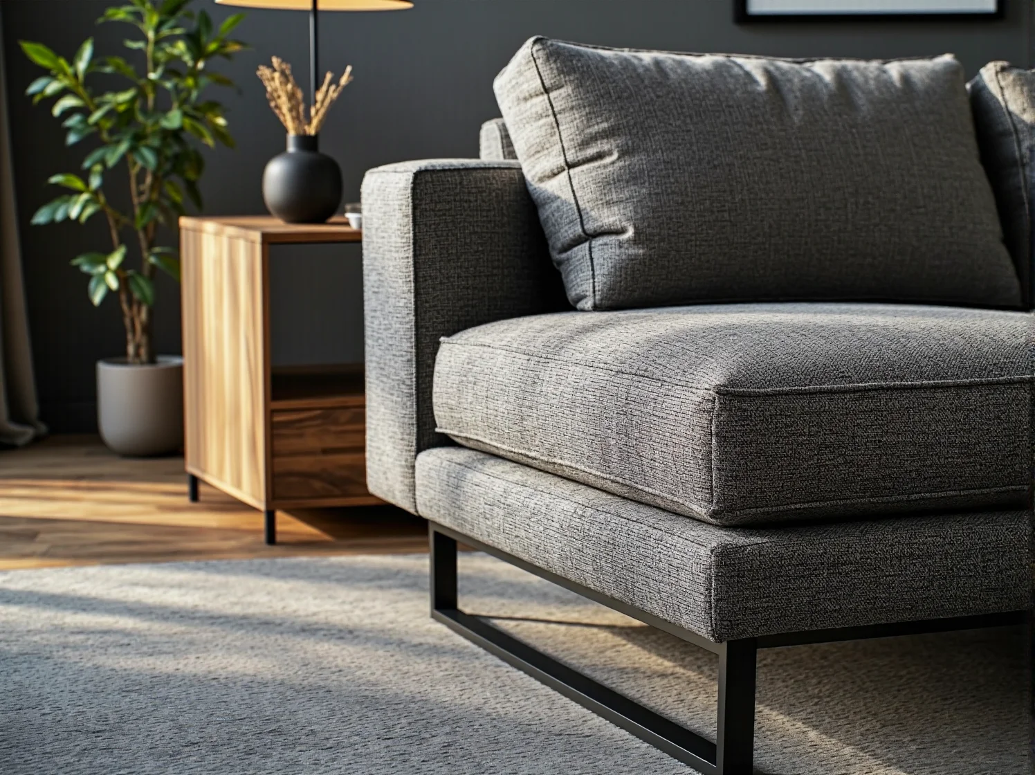 - Przy najdłuższej ścianie: Jeśli twój salon jest wąski i długi, ustawienie narożnika wzdłuż dłuższej ściany może pomóc wyrównać proporcje pomieszczenia. Krótsza część mebla może wtedy subtelnie oddzielać wejście do salonu.